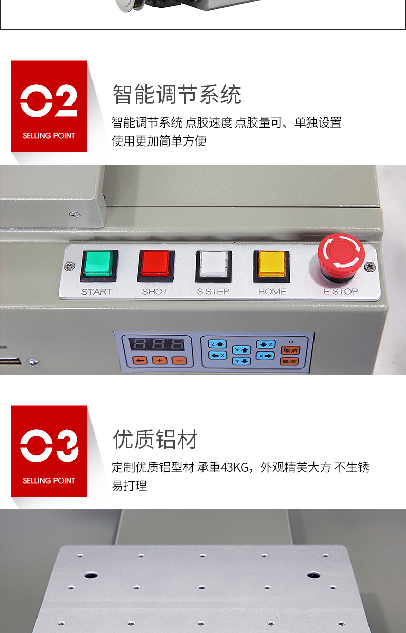3.獨(dú)創(chuàng)的新型視覺(jué)技術(shù),采用了新型的視覺(jué)系統(tǒng)技術(shù),保證點(diǎn)膠過(guò)程的精準(zhǔn)性。