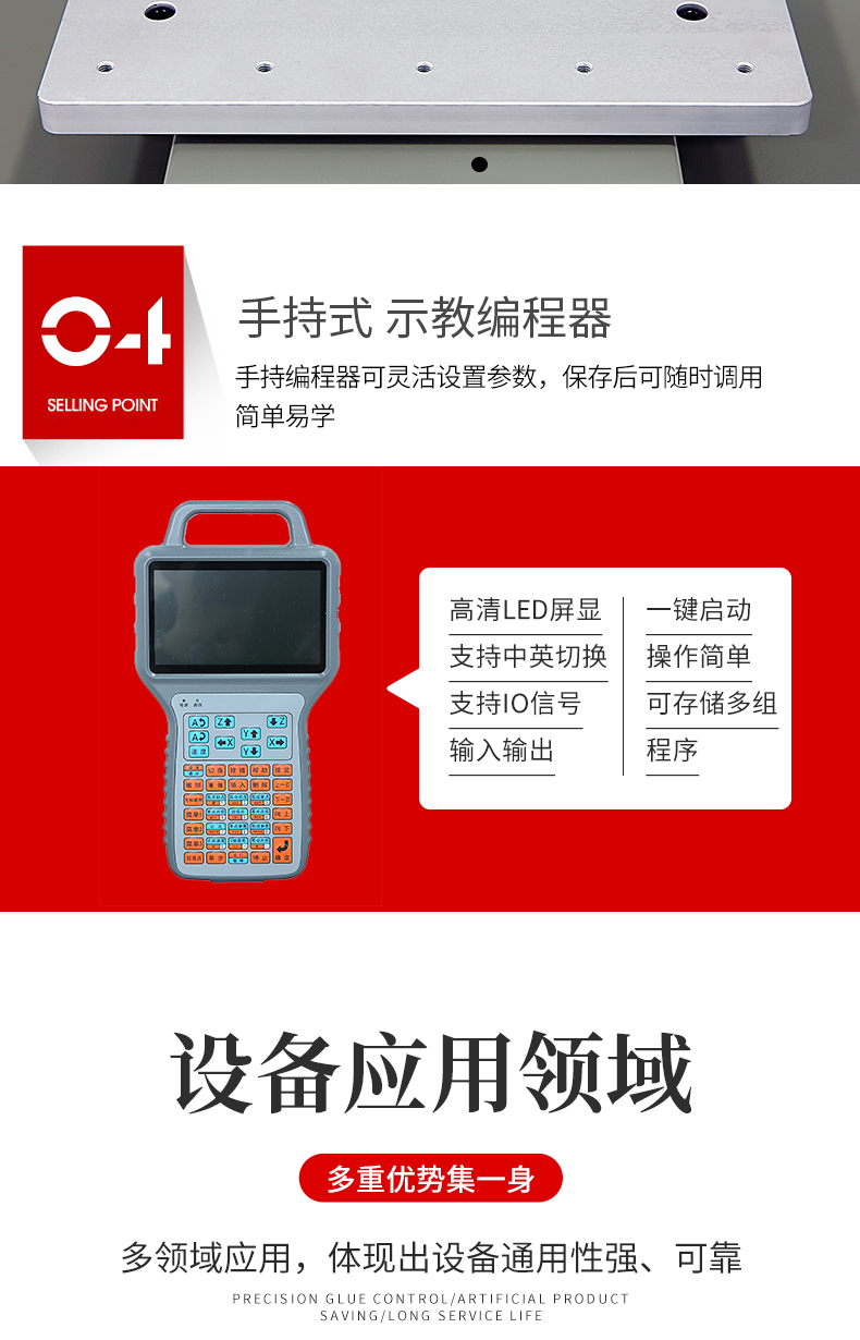 1.取代人工特點(diǎn)的點(diǎn)膠作業(yè),實(shí)現(xiàn)機(jī)械化生產(chǎn) 。