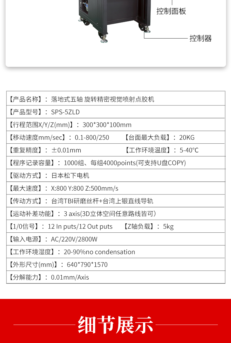主頁  > 產(chǎn)品展示  > 自動(dòng)點(diǎn)膠機(jī)  > 落地式點(diǎn)膠機(jī)  > 五軸精密噴射點(diǎn)膠機(jī)SPS-5ZLD
