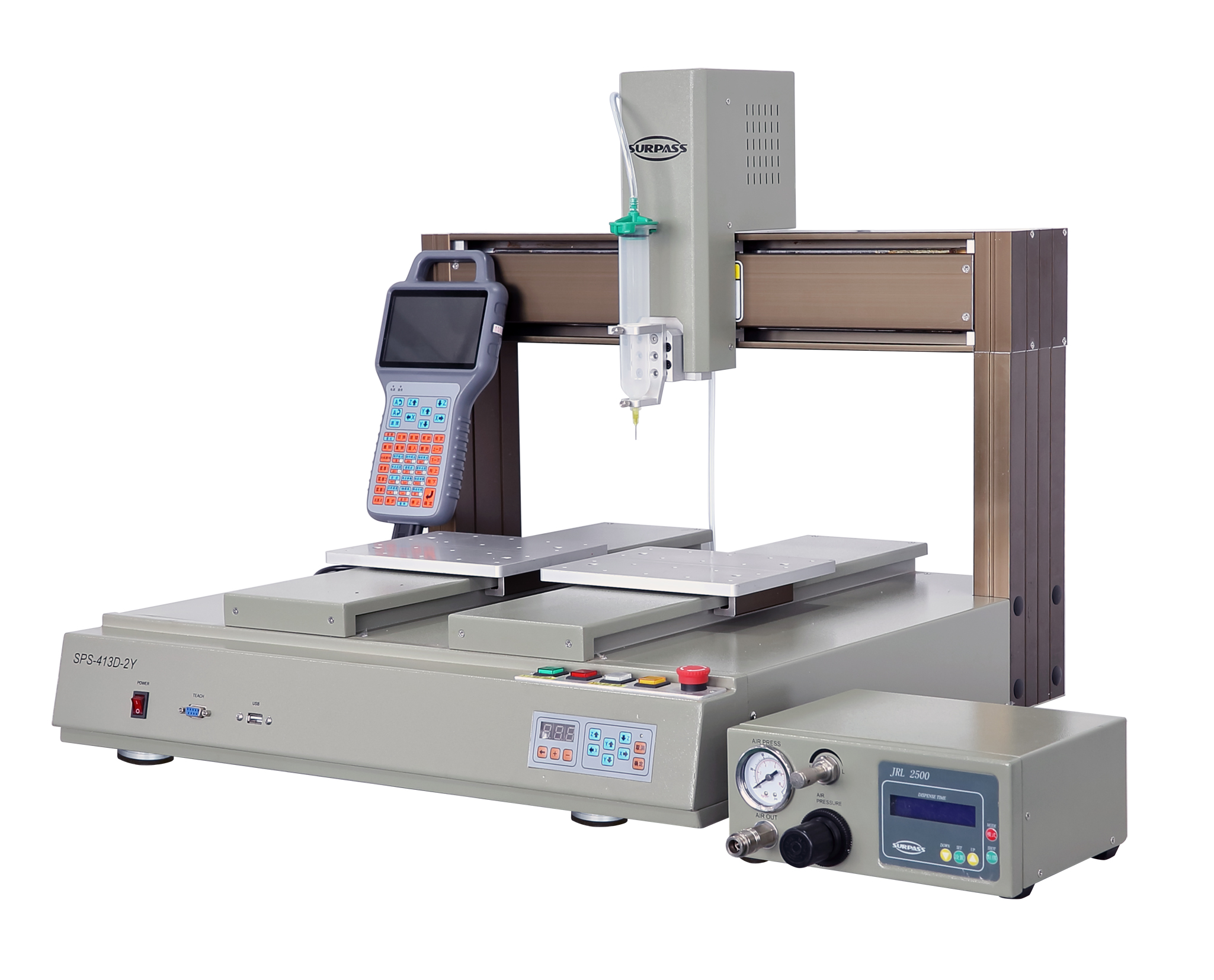 4. 機(jī)臺(tái)上帶有對(duì)針頭的控制按鍵,不需外接教導(dǎo)器,比同類產(chǎn)品調(diào)試 更加方便。