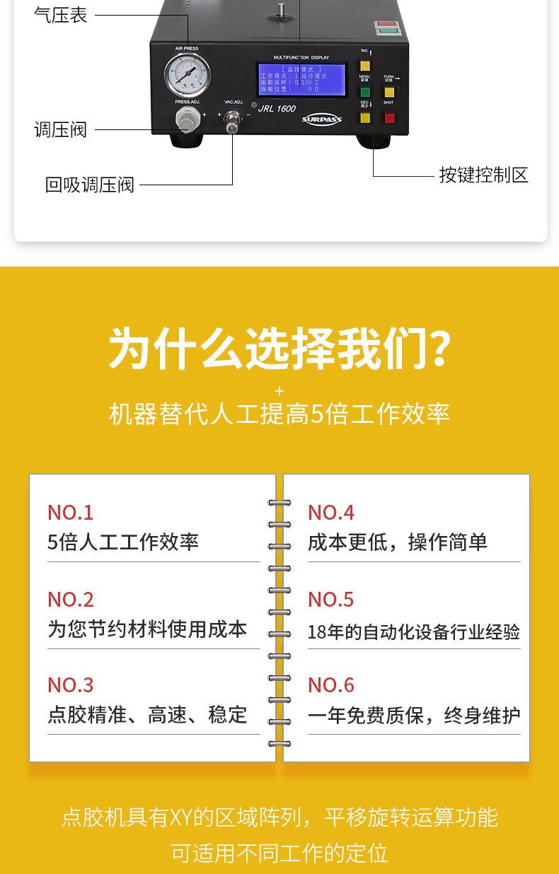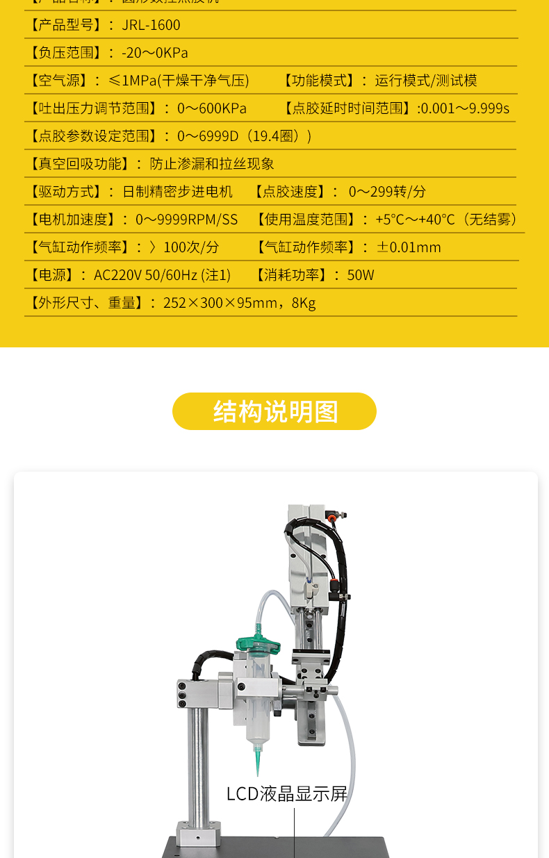 ·非常感謝您購(gòu)買最新款JRL 1600數(shù)位氣壓式圓形數(shù)控點(diǎn)膠機(jī)。